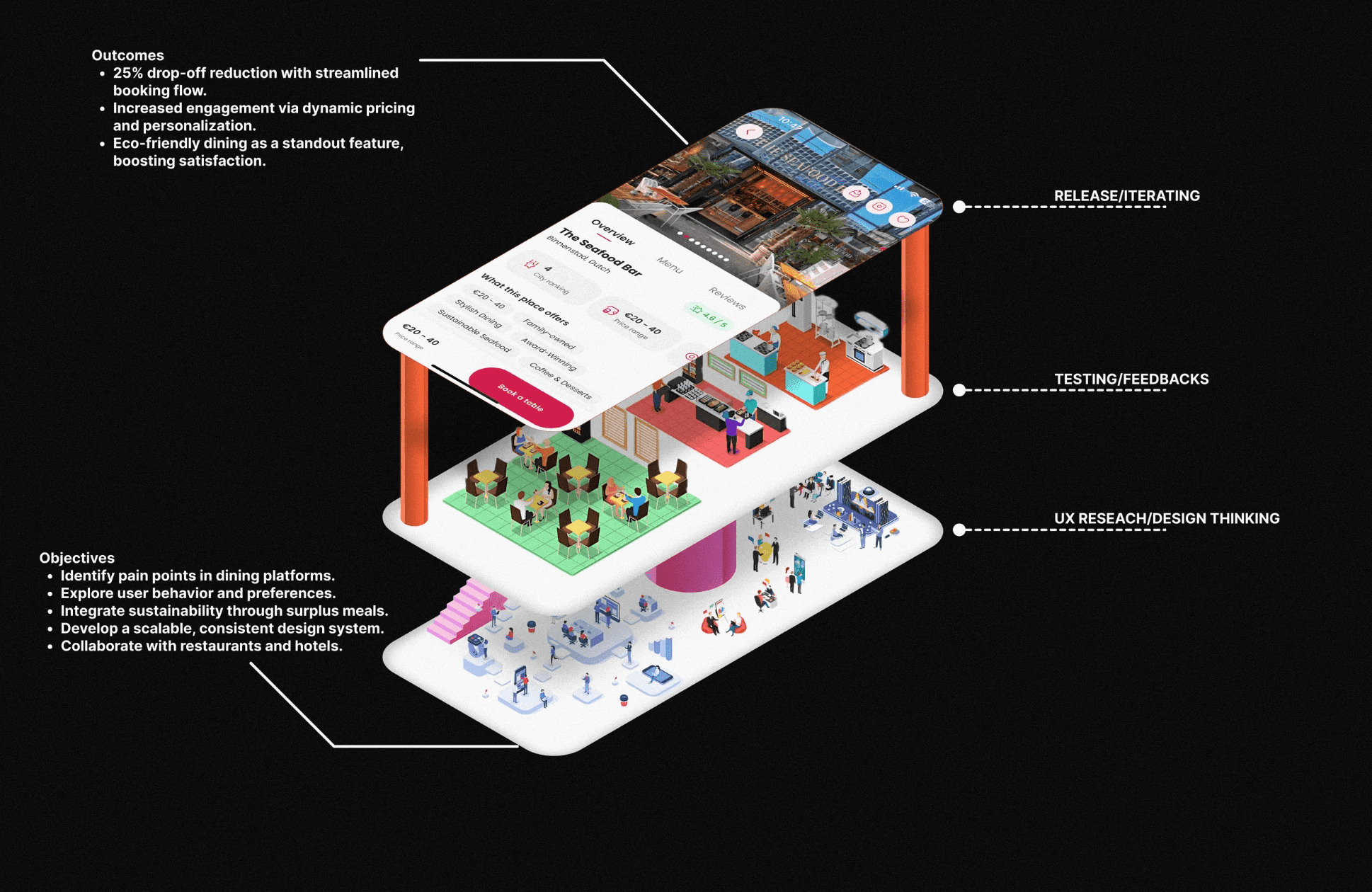 Studied apps like OpenTable, Quandoo, and Too Good To Go.
