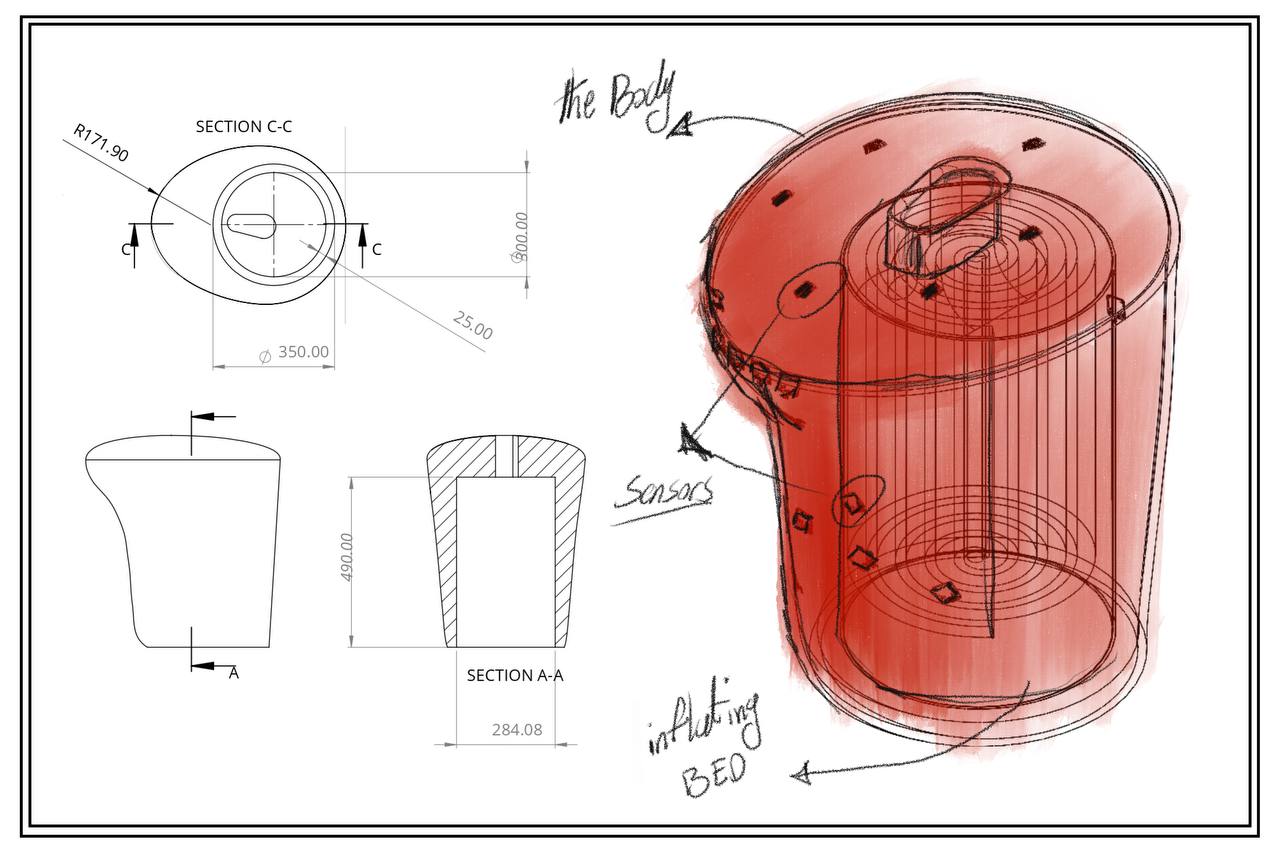 My research, which included interviews with therapists and patients, identified opportunities to integrate IoT and VR technology. Working with Campeggi, I led the redesign to include IoT sensors for posture tracking and a therapist dashboard, VR compatibility for immersive therapy, and a modified physical structure with a wooden base for dual use as a table.