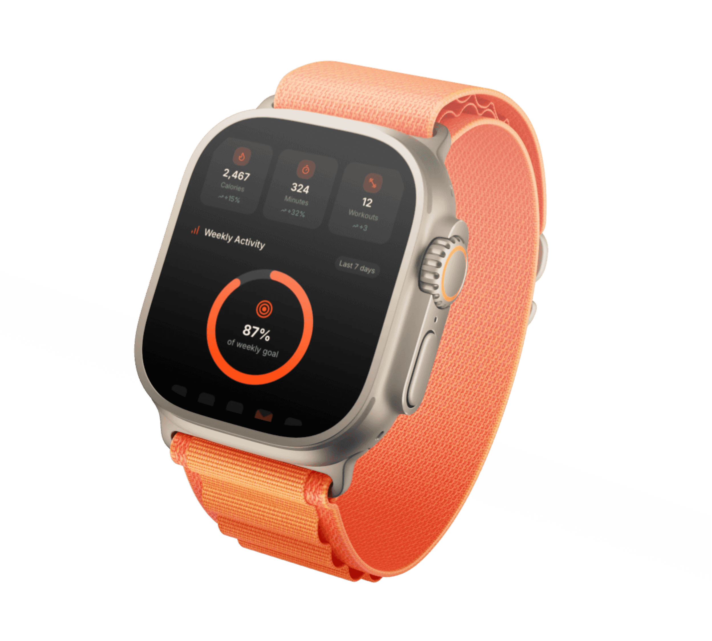 Dark UI with glass accents for sporty energy and high readability in outdoor light.